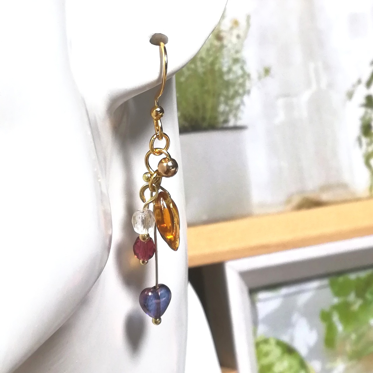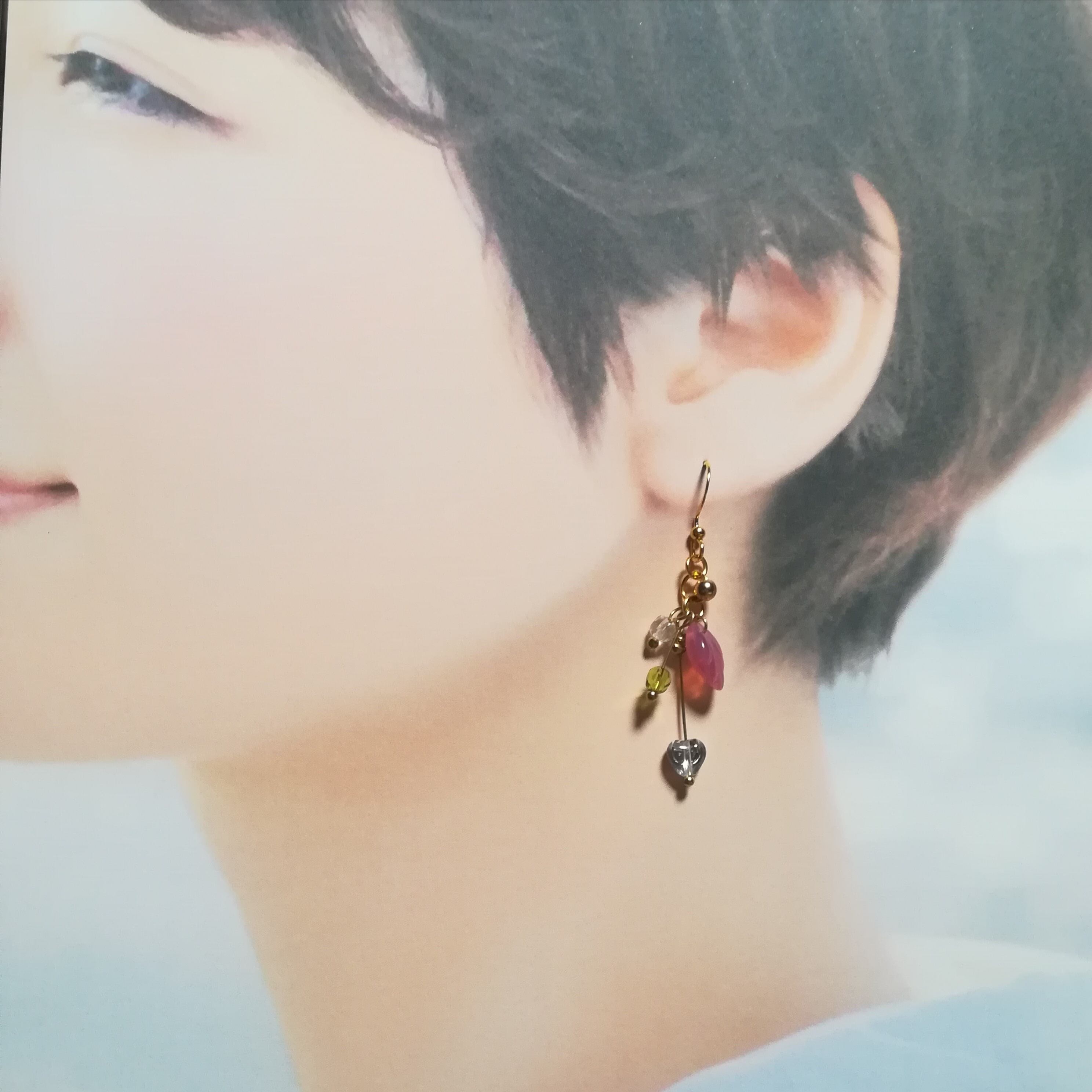 チェコビーズを使って、ハートの実のなる枝を表現してみました。徐々に熟れて其々の色のハートの実が貴女を幸せにしてくれるかも知れませんね。ピアスパーツと丸カンはサージカルステンレス製で金属アレルギー対応品となっていますが、全ての金属アレルギー対応品では有りませんので、異常を感じましたらご使用を中止し、医療機関の受診をお願い致します。