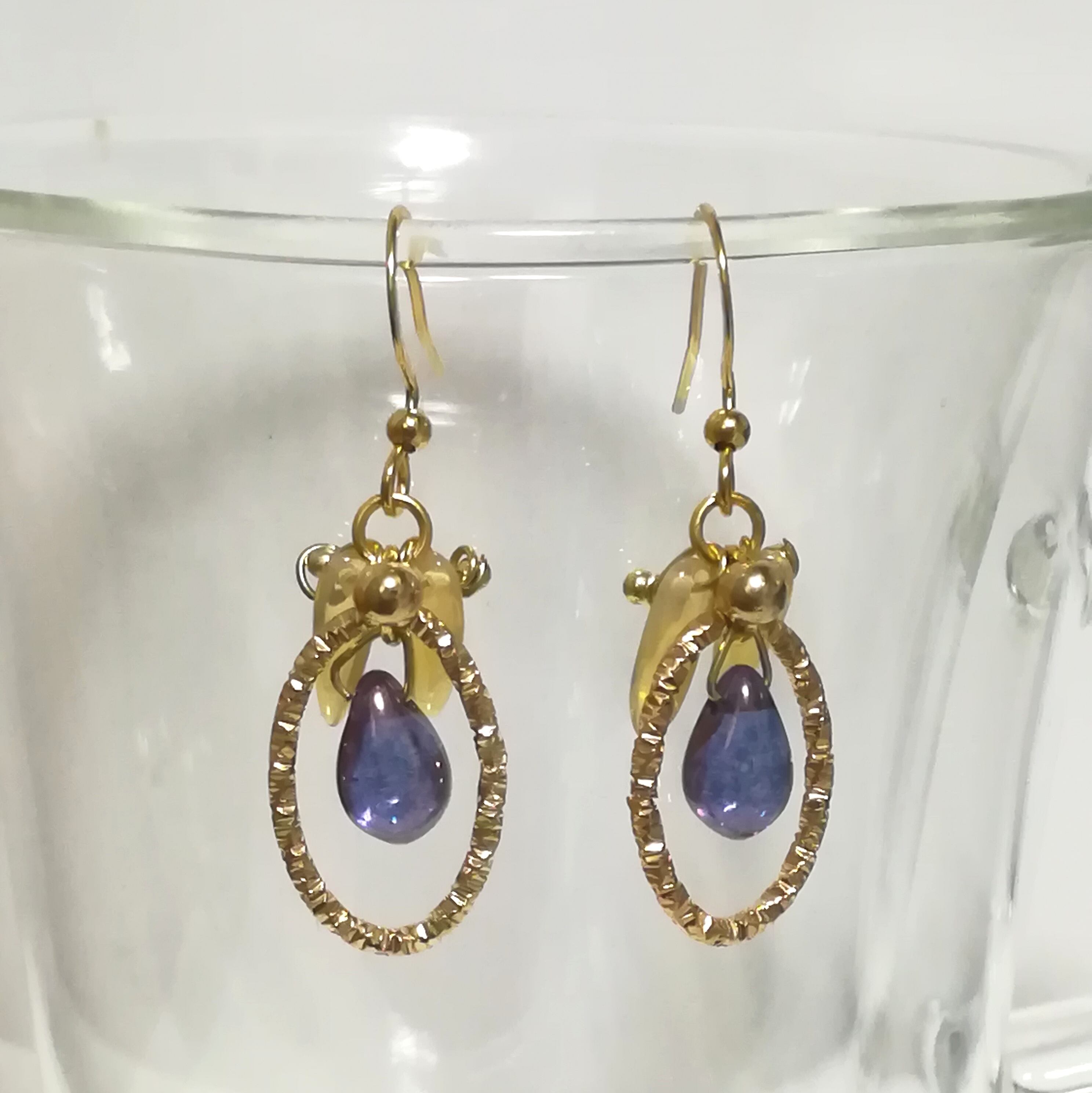 大きな幸せを運ぶ翼の長いエンジェルピアス|大人可愛いチェコビーズピアスtsuduki