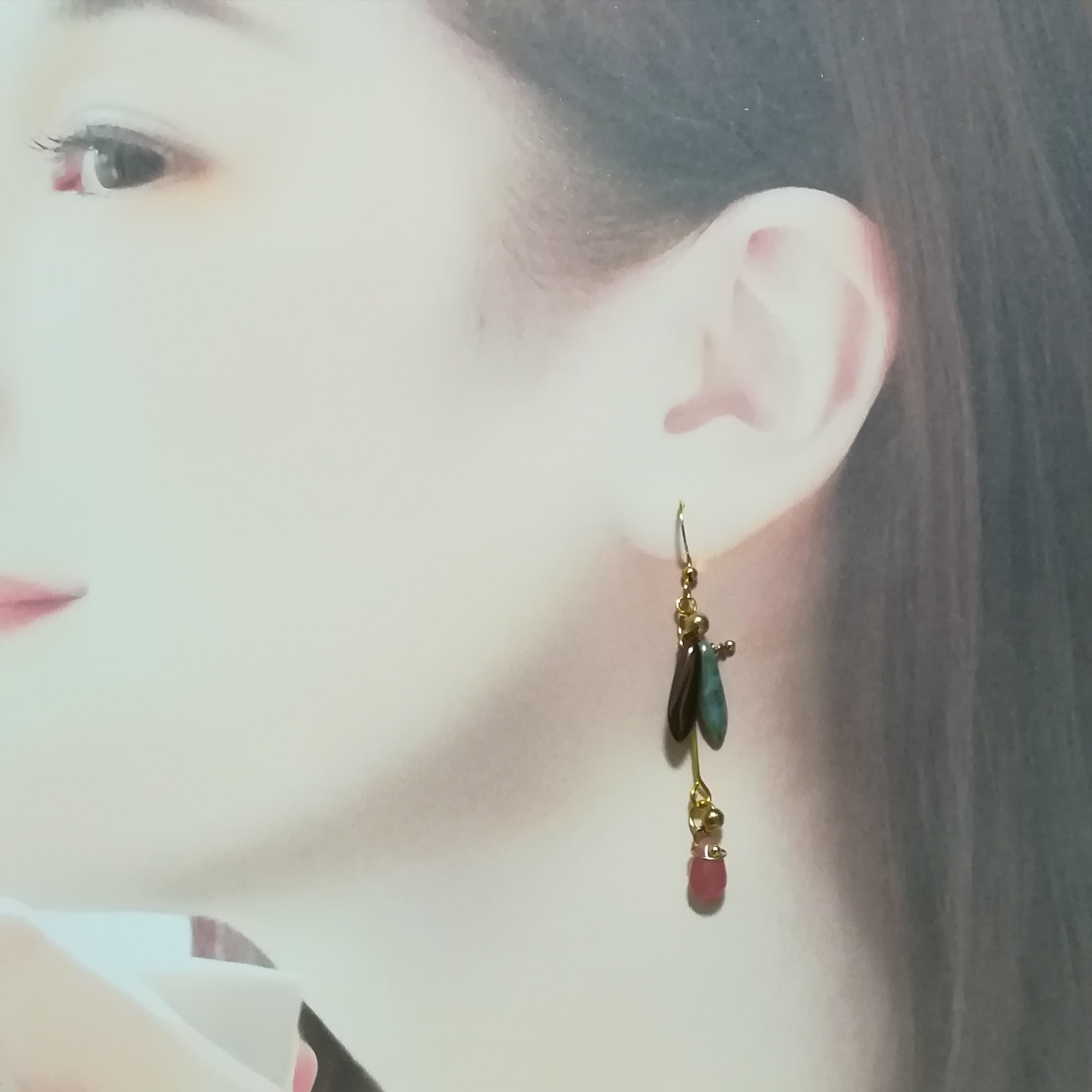 泉の波紋に揺れる木の実ピアス|大人可愛いチェコビーズピアスtsuduki
