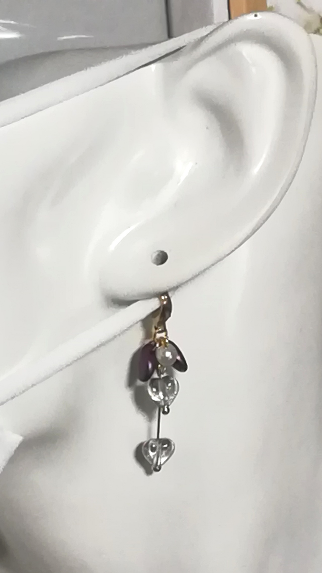 パールビーズを頭にチェコビーズを翼にしたエンジェルにチェコビーズのハートを2個も運ばせてみましたよ。こちらは、カニカンをマスクのゴムの部分に着けるとピアスに見えるマスクチャームに、細めのチェーンに着けてペンダントトップに、ストラップとしてもアクセントに。色々と付け替えて楽しんでみて下さい。