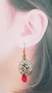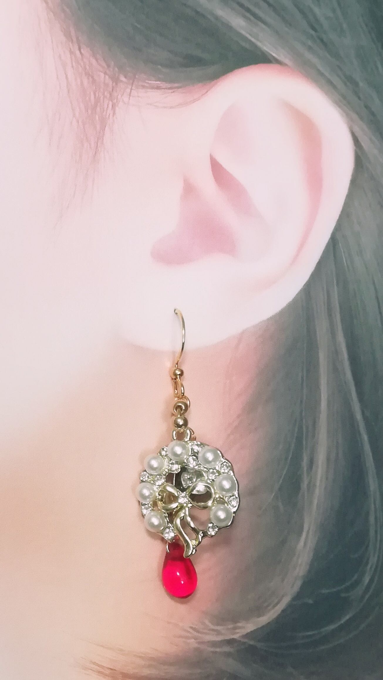 パールビーズ、ラインストーン、メタルリボンの愛らしいモチーフに、大人っぽいチェコビーズドロップをワインレッドとクリアの2色にそれぞれにカニカンを着けてパールビーズモチーフの裏側の小さな2個つの連なった丸カンの下の丸カンに好みの色のチェコビーズドロップを取り付けて、可愛い中にも大人っぽい要素を入れて、合わせるファッションの幅を広げてみました。勿論、チェコビーズを取り付けなくても良いし、チェコビーズのみシンプルなマスクチャームやペンダントトップにもして頂けると言う、何通りにも使って頂ける優れ物です。後1つ、よーく見ると、パールビーズモチーフの後ろに何やら光る物が。日光やライトがあたった時に美しく輝いてくれます。