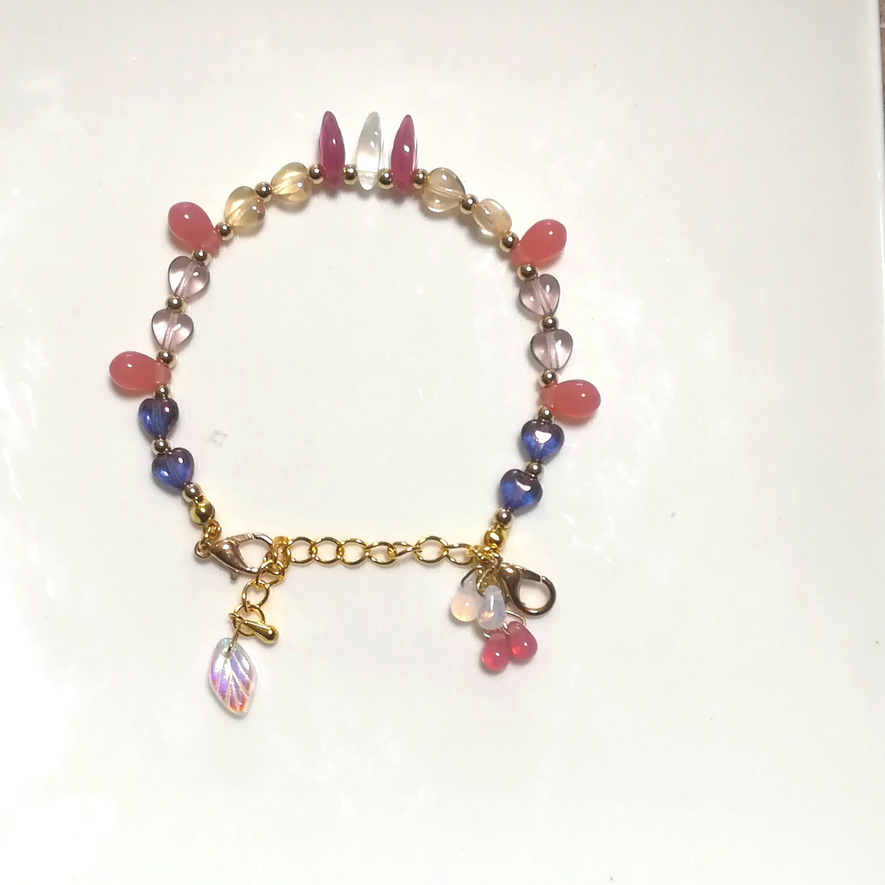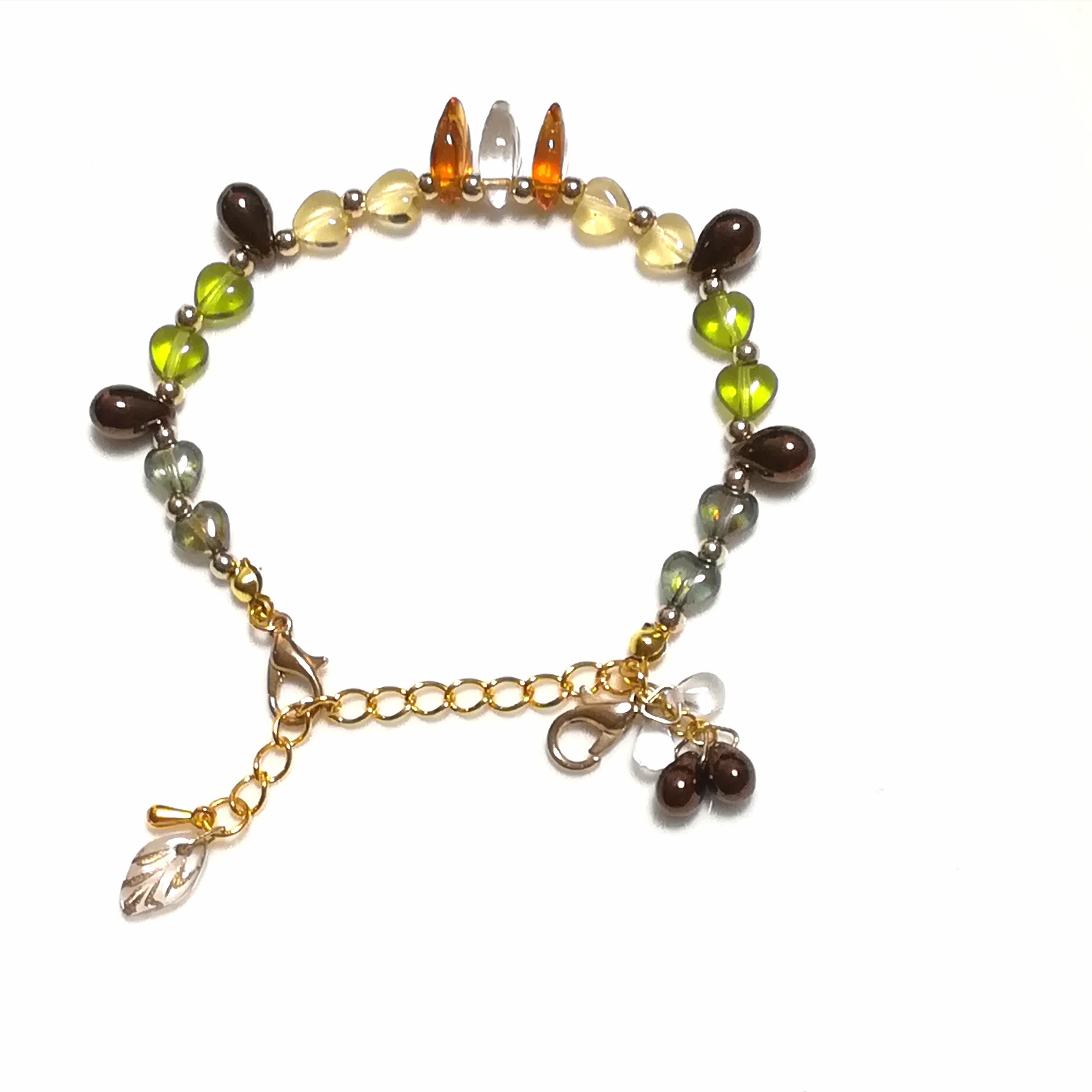 チェコビーズのイブのハートと葉っぱの3way(マスクフック/ブレスレット/ストラップ)アクセサリー|大人可愛いチェコビーズアクセサリーtsuduki