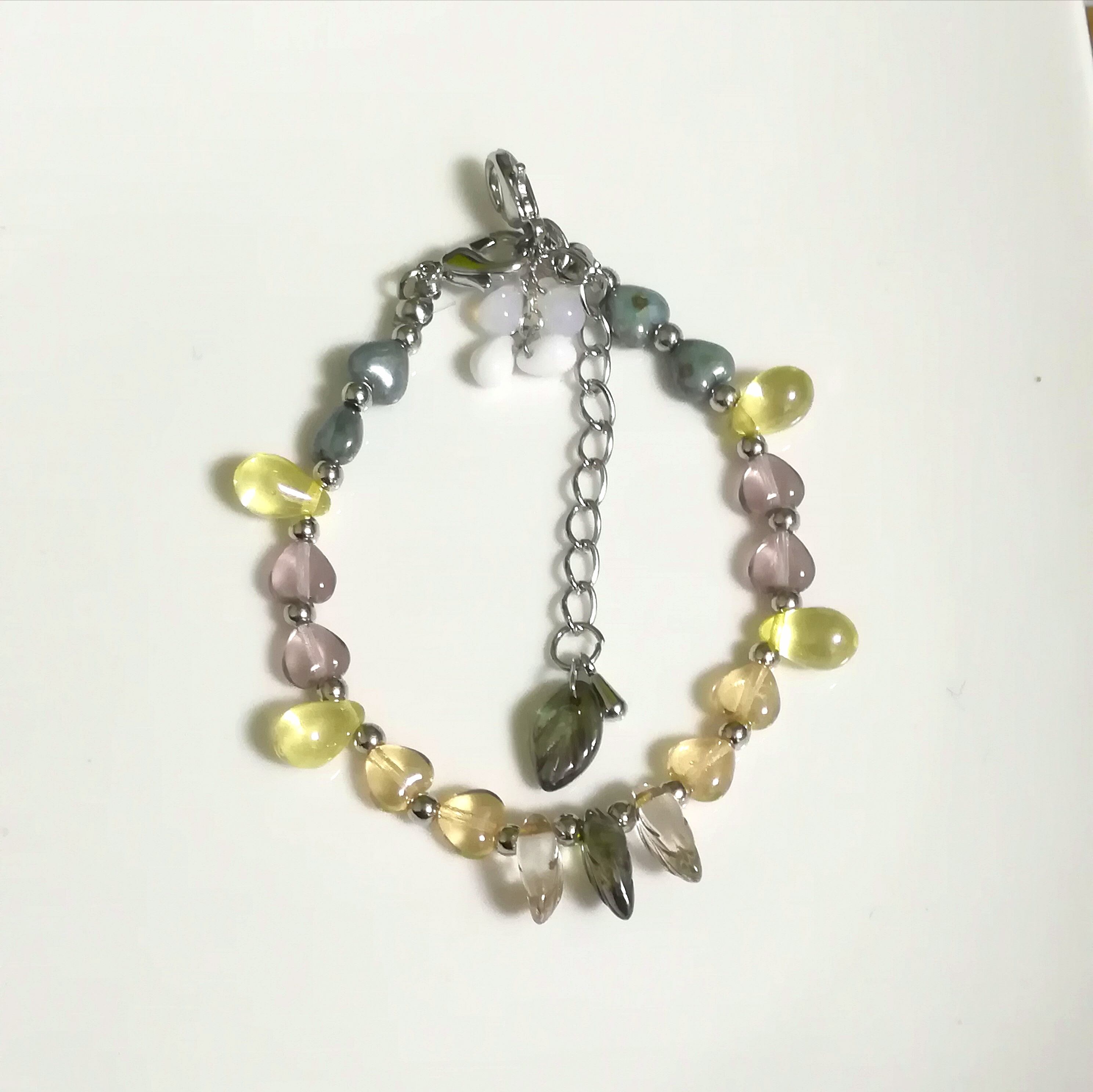 チェコビーズのイブのハートと葉っぱの3way(マスクフック/ブレスレット/ストラップ)アクセサリー(シルバー金具仕様)|大人可愛いチェコビーズアクセサリーtsuduki