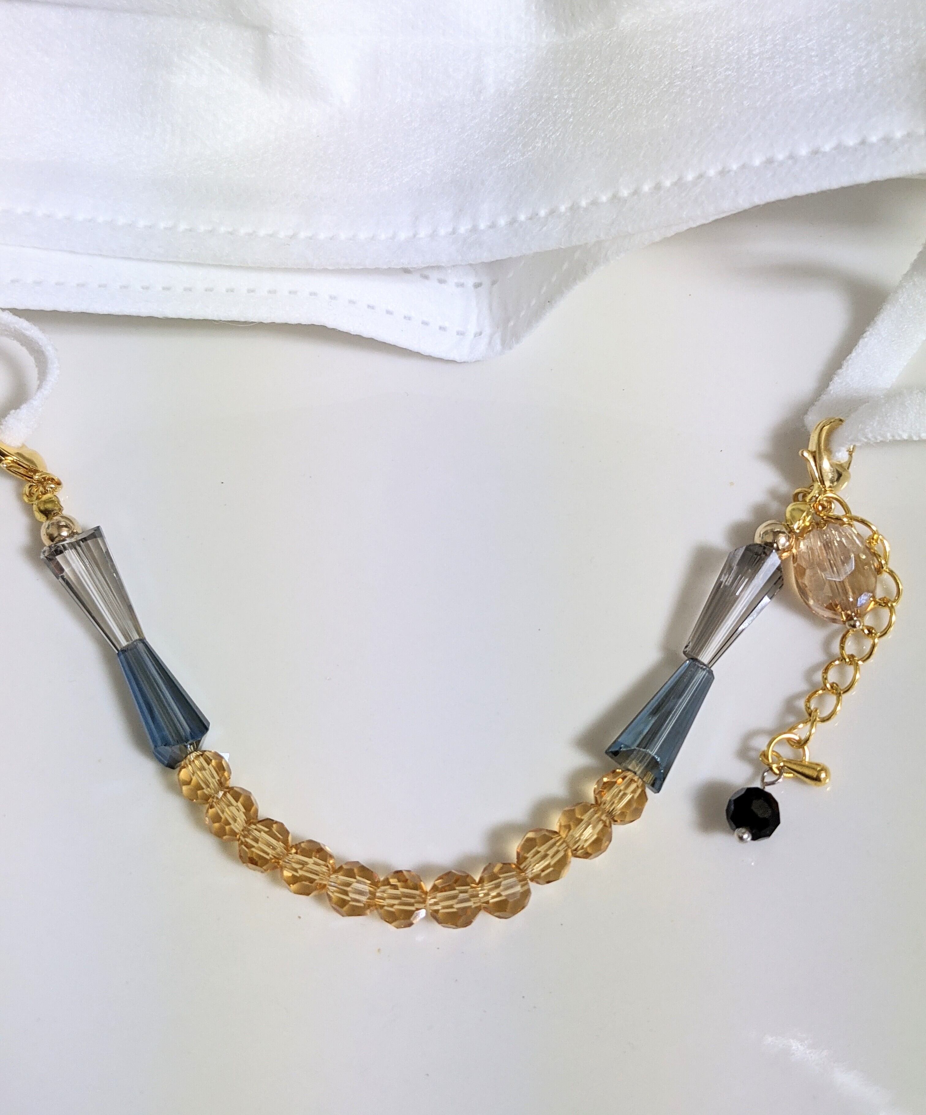 多面カットで煌めきを重視し、ビーズの色や形はクールで大人っぽい雰囲気の3wayアクセサリーです。マスクフックとして、ブレスレットとして、ストラップやバッグチャームとして(ストラップパーツ付き)の3wayをお楽しみ下さいね。