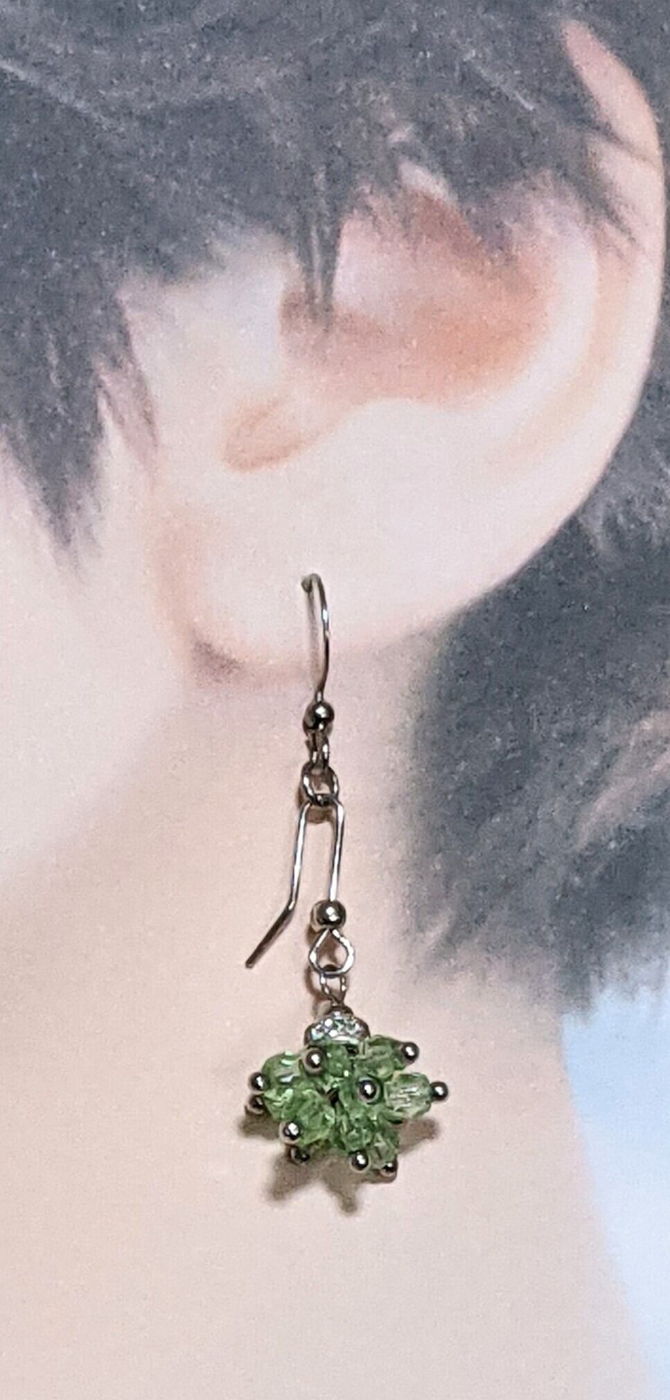 チェコビーズの小さ目カットビーズで弾ける実に見立てた、シンプルで合わせ易い3wayアクセサリーです。別売りの丸カン付きピアス、イヤリング、カニ環パーツに、フックを掛けて色々なファッションに合わせやすい、ピアス、イヤリング、マスクチャーム、ストラップ、バッグチャーム等お楽しみ下さいね。